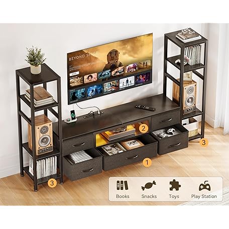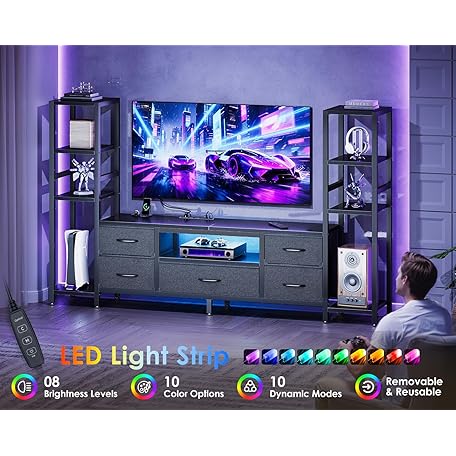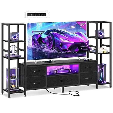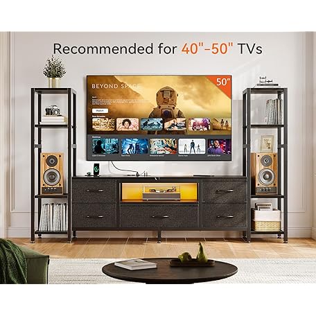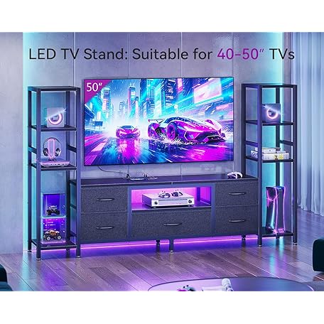 Thông tin sản phẩm Casaottima TV Stands for 40/43/50 Inch TV, Entertainment Center with LED Lights & Power Outlets, TV Stand Living Room with 5 Fabric Drawers, TV Console Cabinet for Bedroom, Black