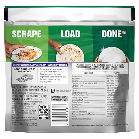 Thông tin sản phẩm Cascade Platinum Dishwasher Pods, Dishwasher Detergent, Dish Detergent Soap, Fresh, 12 count