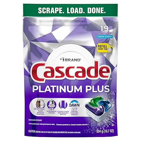 Sản phẩm Cascade Platinum Plus Dishwasher Pods, Dishwasher Detergent, Dish Detergent Soap, Fresh, 19 Count đang được bán với giá ưu đãi là $10.8346 tại nước Mỹ.