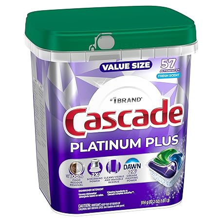 Sản phẩm Cascade Platinum Plus Dishwasher Pods, Dishwasher Detergent, Dish Detergent Soap, Fresh, 57 Count đang được bán với giá ưu đãi là $23.3696 tại nước Mỹ.