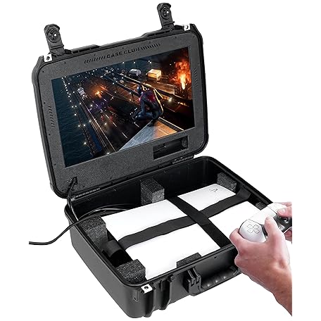 Case Club Portable Game Station with Built-in 18.5" Monitor - Fits PlayStation 5 (Gen 1 Disk or Digital), Controller, 2 Games, Built-in Cooling Fan - Hard-Shelled PS5 Travel Case. Waterproof, Lockable