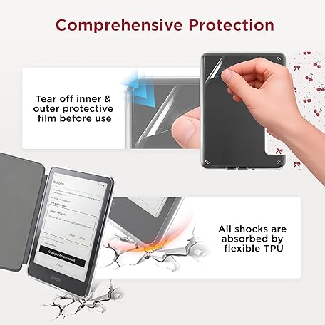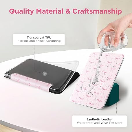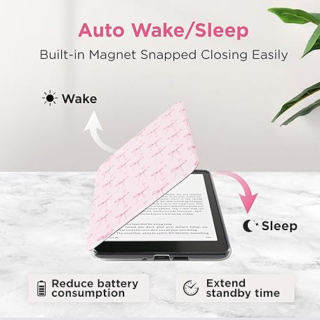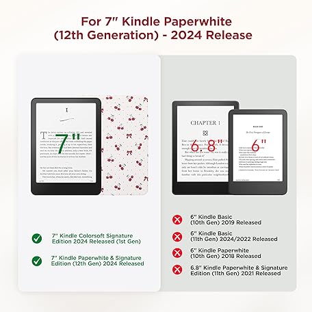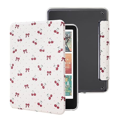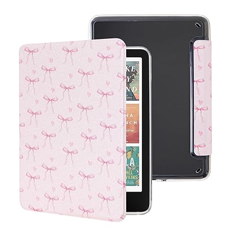 Thông tin sản phẩm Case for 7'' Kindle Paperwhite 12th Gen 2024 and Kindle Colorsoft Signature Edition, Slim PU Shell Cover Case with Auto Wake/Sleep, Pink Bow Tie, Cherry