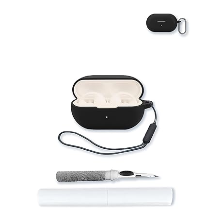 Case for Ambie AM-TW02 Sound earcuffs,Soft Protective,BOVUGAC Silicone Case Cover for Ambie AM-TW02 Earbuds with Keychain & Cleaning Kit & Lanyard-Black
