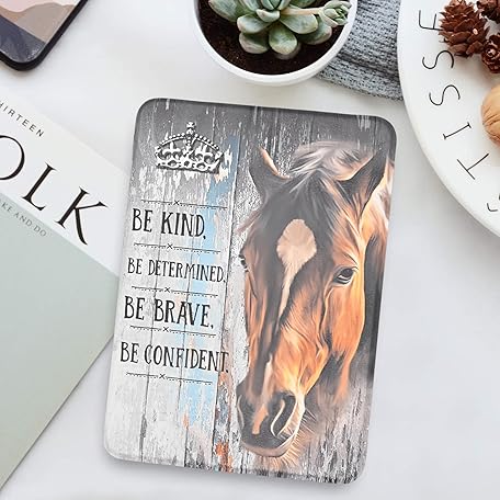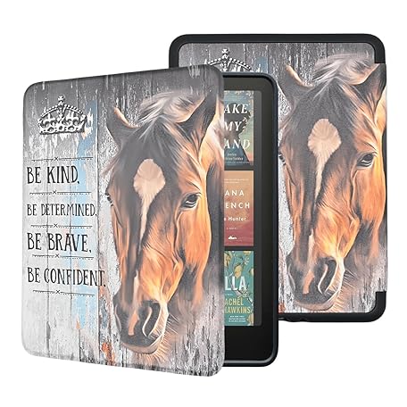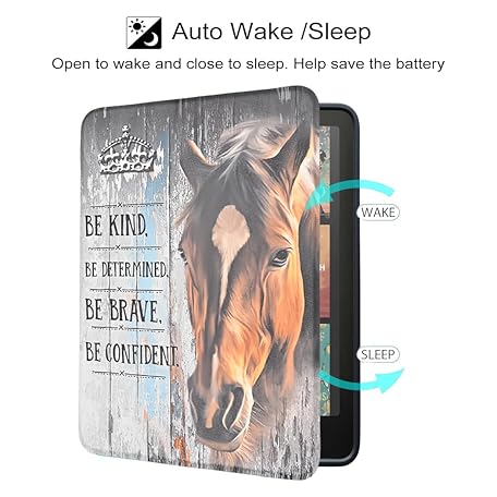 Case for Kindle Paperwhite 12th Gen 2024 (7") & Kindle Colorsoft Signature Edition, Book Lovers Lightweight Protective Cover with Auto Sleep Wake Hand Strap, Inspirational Horse