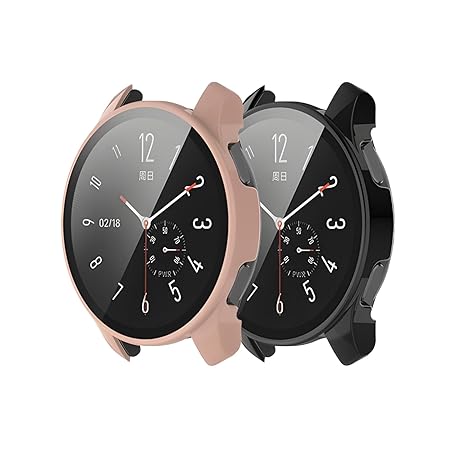 Case for Xiaomi Watch S1 Smart Watch,UYRUREL PC Shell+Tempered Glass Integrated Design,Anti Fall and Scratch Resistant, High-Definition and Transparent,Black+Pink,2 Pack