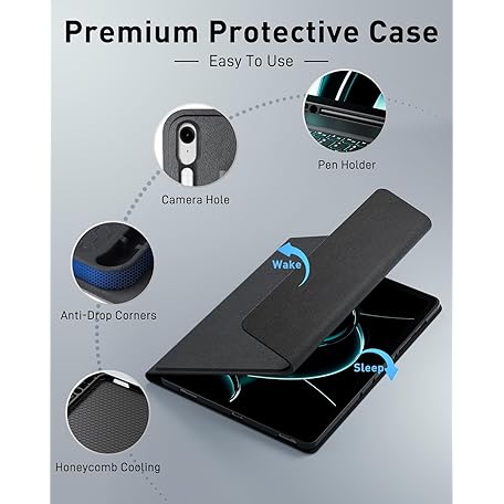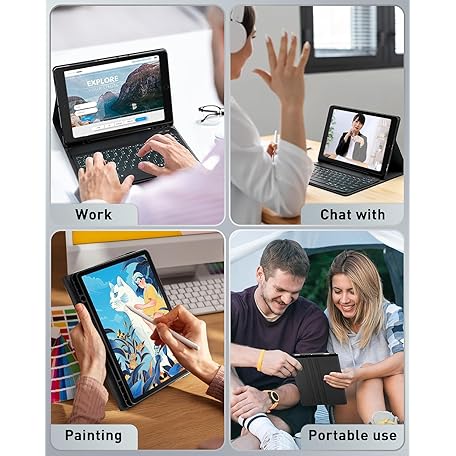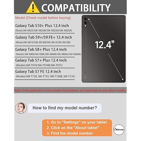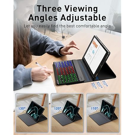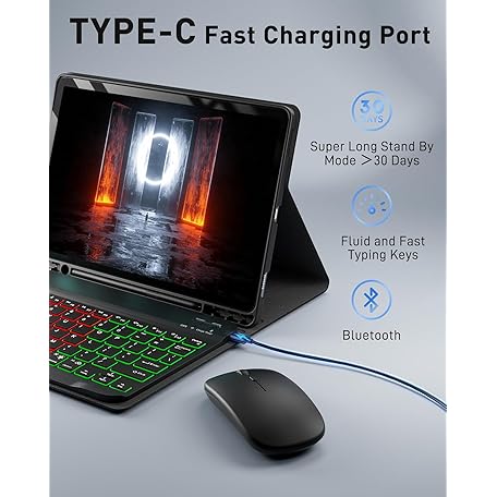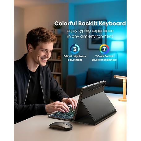 Case Keyboard for Samsung Galaxy Tab S10+ Plus / S9 FE+ Plus / S9+ Plus / S8+ Plus / S7 FE / S7+ Plus 12.4 inch - 7 Color Rainbow Backlit Magnetic Keyboard with S Pen Holder with Mouse - Black