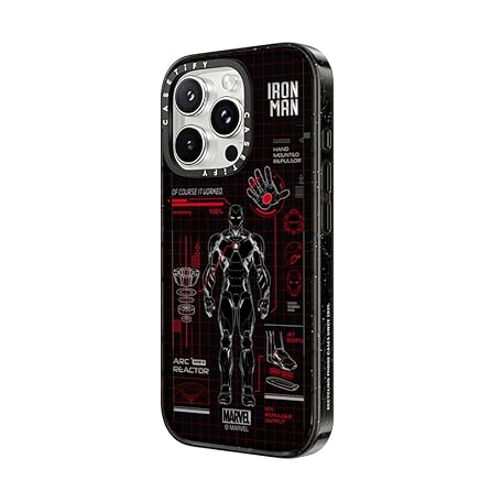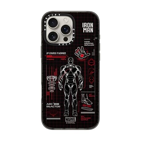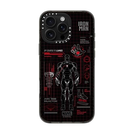CASETiFY Impact iPhone 16 Pro Max Case [Iron Man Co-Lab / 4X Military Grade Drop Tested / 8.2ft Drop Protection/Compatible with Magsafe] - Iron Man Blue Print Tech - Red - Clear Black