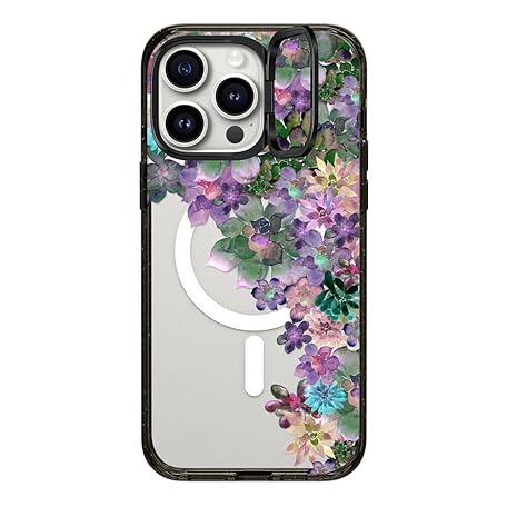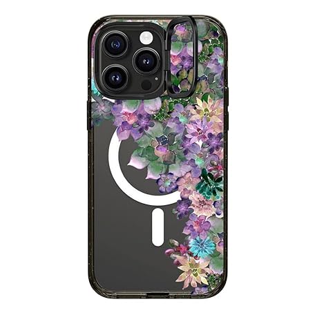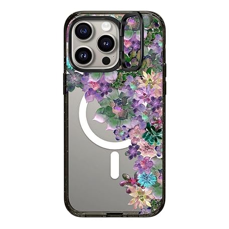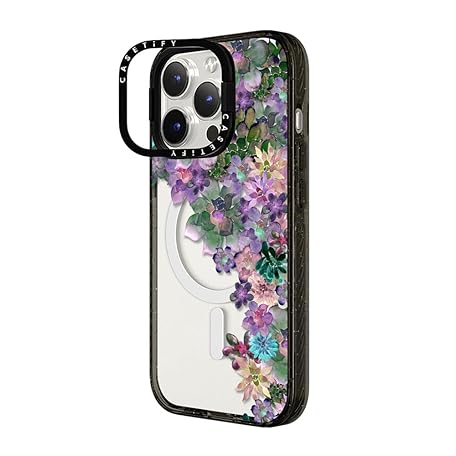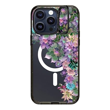 CASETiFY Impact Ring Stand Case for iPhone 15 Pro Max [3X Military Grade Drop Tested / 6.6ft Drop Protection/Compatible with Magsafe] - Flower Prints - My Succulent Garden - Clear Black