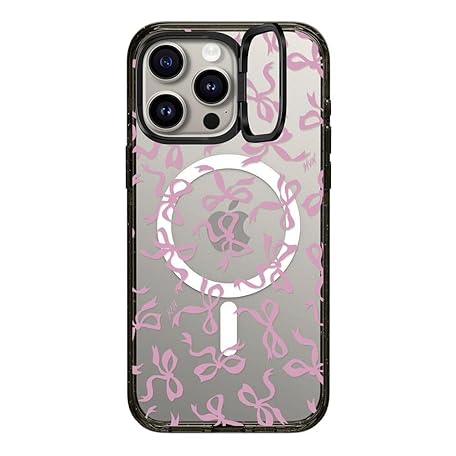 CASETiFY Impact Ring Stand Case for iPhone 15 Pro Max[3X Military Grade Drop Tested / 6.6ft Drop Protection/Compatible with Magsafe] - Bows - Clear Black
