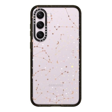 CASETiFY Impact Samsung Galaxy S23+ Case [4X Military Grade Drop Tested / 8.2ft Drop Protection] - Space Pattern on Clear Background/Gold Stars and Moon Universe - Clear Black
