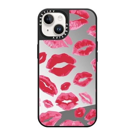 CASETiFY Mirror Case for iPhone 14 Compatible with Magsafe - Lipstick Kisses - Silver on Black