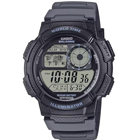 Casio AE-1000W Series | Black/Black | 10-Year Battery | World Time | Daily Alarm | Digital Illuminator Watch
