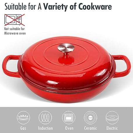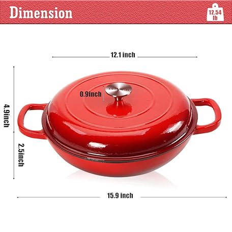 Thông tin sản phẩm Cast Iron Casserole Braiser,3.8 Quart Enameled Cast Iron Pan,Heavy Duty Casserole Skillet with Lid and Dual Handles,Porcelain Surface Casserole Dish with Lid,Dutch Oven Gifts for Family,Red