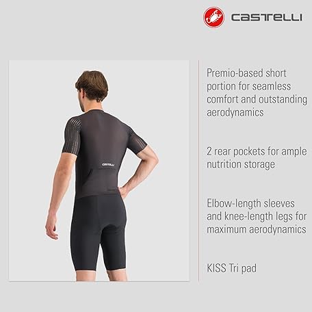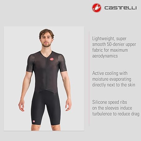 • CASTELLI Men’s PR 2 Speed Suit, Cycling Race Swim Bike Run, Aerodynamic Triathlon Suit with Tri Seat Pad