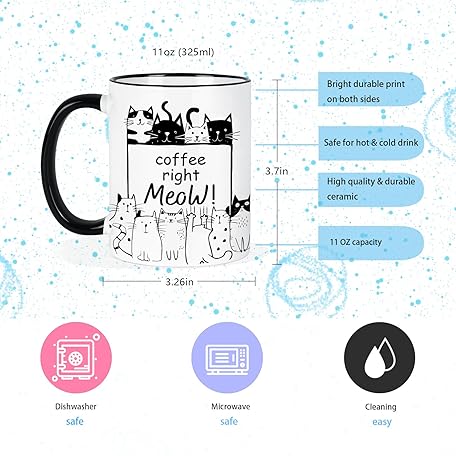 Thông tin sản phẩm Cat Mug 11Oz Cute Gifts for Cat Lovers Women Cats Mom, Birthday Gifts for Friends Family, Ceramic Coffee Mug with Cats Microwave and Dishwasher Safe