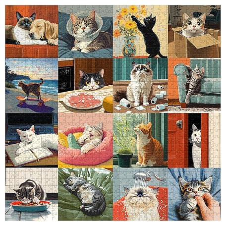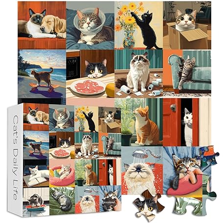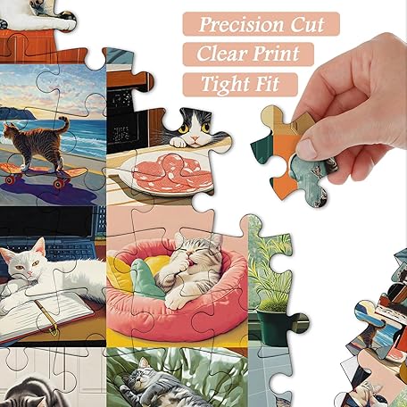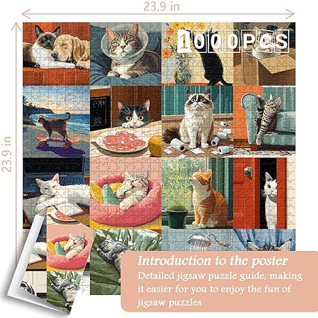 • Cat Puzzles for Adults 1000 Pieces, PICKFORU Funny Animal Puzzles for Adults Cute Kitty, Unique Family Cat Jigsaw Puzzles