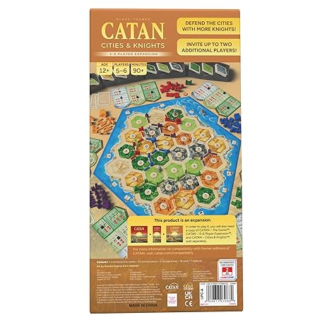Thông tin sản phẩm CATAN Cities & Knights 5-6 Player Board Game Extension (6th Edition) Add More Players, Strategy Game for Kids & Adults, Ages 12+, 3-6 Players, 90-120 Minute Playtime, Made by Catan Studio