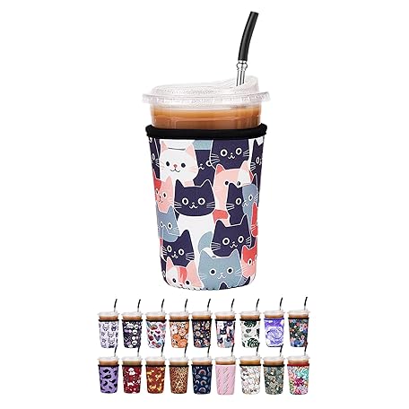 • Cavllson Reusable Insulated Neoprene Iced Coffee Sleeves & Coffee Cup Holder, Universal Fit 16-32oz Cups for Hot/Cold Beverages - Round Faced Cat-1 Pack Medium