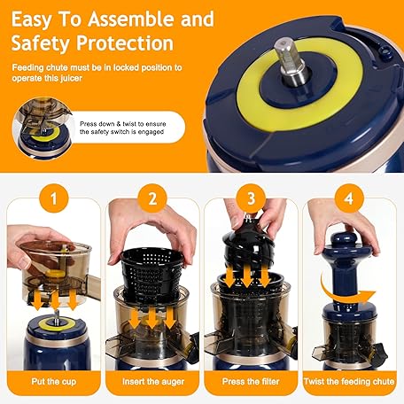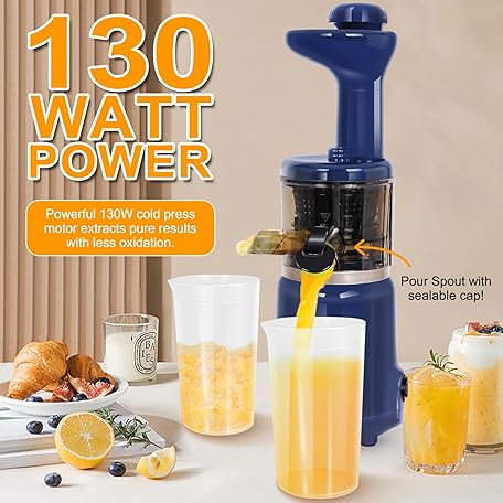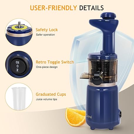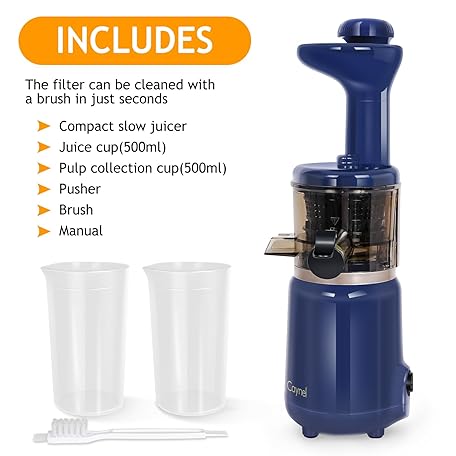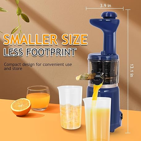 Thông tin sản phẩm CAYNEL Compact and Portable Cold Press Juice, Masticating Slow Juicer with 1.77” Extra Wide Inlet Funnel for Fruites and Vegetables,Includes Brush, 16 oz Juice Cup, Easy to Clean,Blue