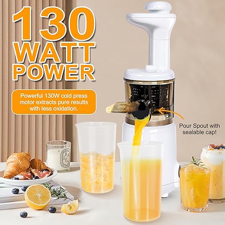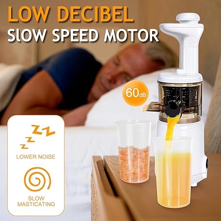 Thông tin sản phẩm CAYNEL Compact and Portable Cold Press Juice, Masticating Slow Juicer with 1.77” Extra Wide Inlet Funnel for Fruites and Vegetables,Includes Brush, 16 oz Juice Cup, Easy to Clean,White