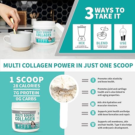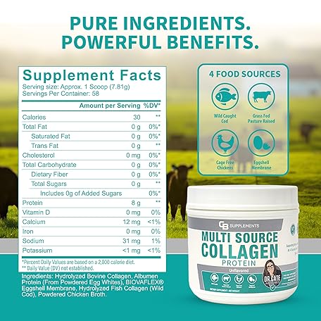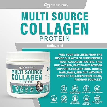 Thông tin sản phẩm CB Supplements Multi Collagen Protein – Hydrolyzed Collagen for Joint, Skin, Gut, Hair & Nail Health – Unflavored Powder with Types I, II, III, V & X – Grass-Fed & Clean – 58 Servings
