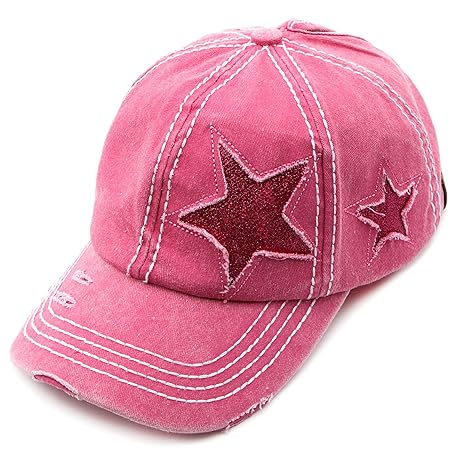 C.C Exclusives Hatsandscarf Washed Distressed Cotton Denim Ponytail Hat Adjustable Baseball Cap (BT-14)