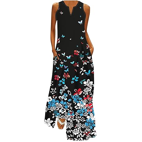 Ceboyel Womens Boho Floral Maxi Dresses Floral Flowy Long Dresses Sleeveless Sun Dress Casual Summer Trendy Outfits 2024