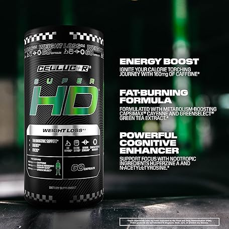 Thông tin sản phẩm Cellucor SuperHD Thermogenic Fat Burner Weight Loss Supplement, Appetite Suppressant, & Energy Booster Capsimax, Green Tea Extract, 160mg Caffeine & More 60 Capsules (Packaging May Vary)