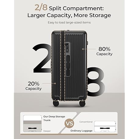 CENSIEN Trunk Luggage, 28 Inch Checked Luggage with Spinner Wheels, Lightweight PC Hard Shell Large Suitcase with TSA Lock, Removable Dividers (Black, 1PC)