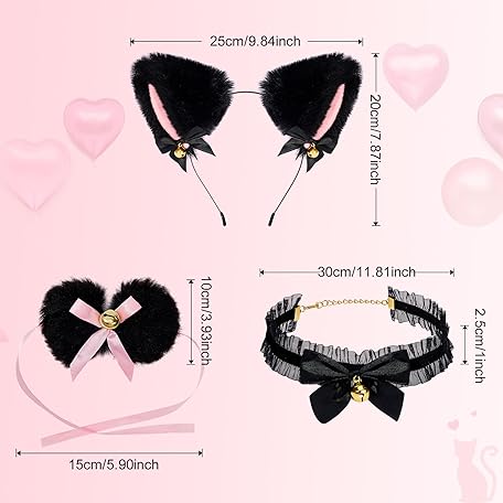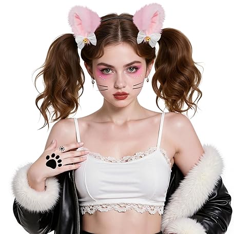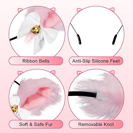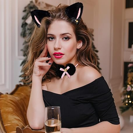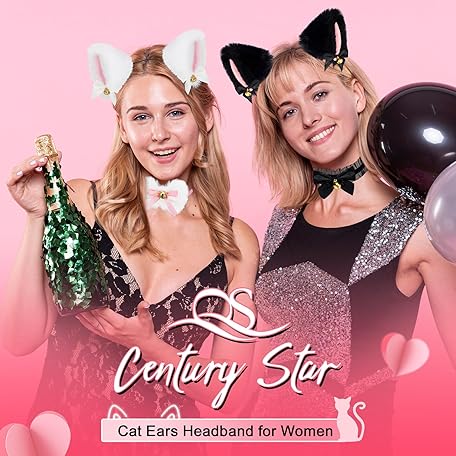 • Century Star Women Cat Ears Headband Necklace with Bells Girls Easter Energetic kitty Ears Hair Accessory Costume Party