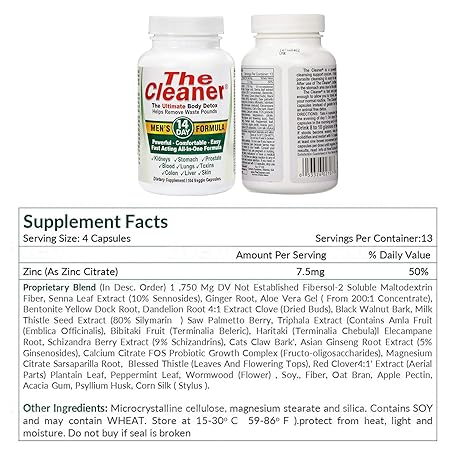 Thông tin sản phẩm Century Systems The Cleaner Detox, Powerful 14-Day Complete Internal Cleansing Formula for Men, Support Digestive Health, 104 Vegetarian Capsules