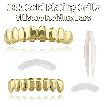 Sản phẩm Ceonam 16 Pieces 18K Gold Plated Gold Finish Gold Teeth Grillz, 8 Upper Teeth + 8 Lower Teeth Hip Hop Mouth Grills Fang with Adhesive Molding Strips for Men Women đang được bán với giá ưu đãi là $10.8891 tại nước Mỹ.