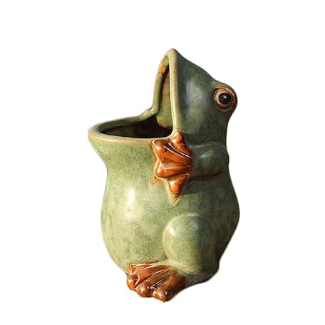 • Ceramic Frog Shaped Plant Pot Bonsai Flower Pot ucculent Planter Multipurpose Pot Garden Outdoor Decor Outdoor Planter Plants Patio Balcony Yard Lawn Ornament Gifts for Women(4.3")