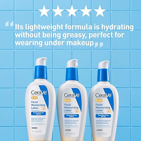 Thông tin sản phẩm CeraVe AM Facial Moisturizing Lotion with SPF 30, Oil-Free Face Moisturizer with SPF, Formulated with Hyaluronic Acid, Niacinamide & Ceramides, Non-Comedogenic, Broad Spectrum Sunscreen, 3 Ounce