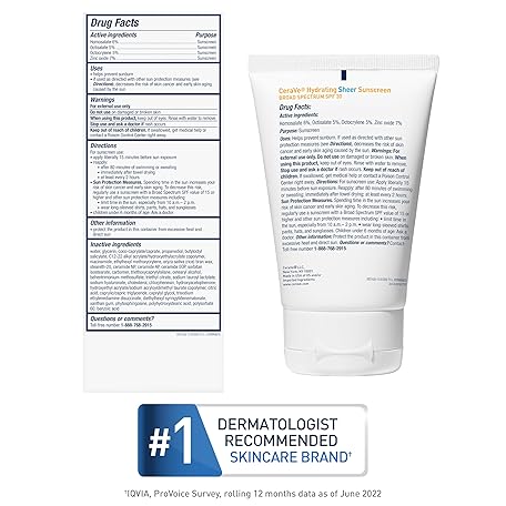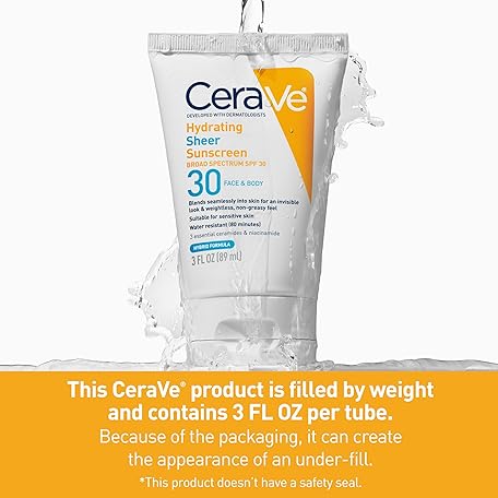 Thông tin sản phẩm CeraVe Hydrating Sheer Sunscreen with SPF 30 for Face and Body, Mineral & Chemical Sunscreen for Men & Women with Zinc Oxide, Hyaluronic Acid and Ceramides, Paraben-Free + Fragrance-Free, 3 Ounces