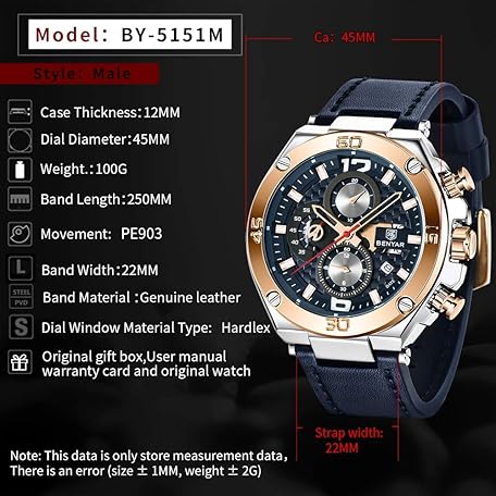 Sản phẩm CEYADG BENYAR Mens Watches Chronograph Date Waterproof Sports Watches Leather Strap Business Wrist Watches đang được bán với giá ưu đãi là $43.5782 tại nước Mỹ.