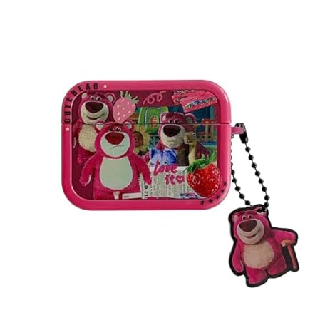 Chain Charm Soft TPU Case Compatible with Apple AirPods 1 2 3 4 Pro Toy Story Pixar Cartoon Anime Cool Fun Cute Lovely Adorable Kids Boys Girls (Lotso Huggin Bear, for AirPods 4th)