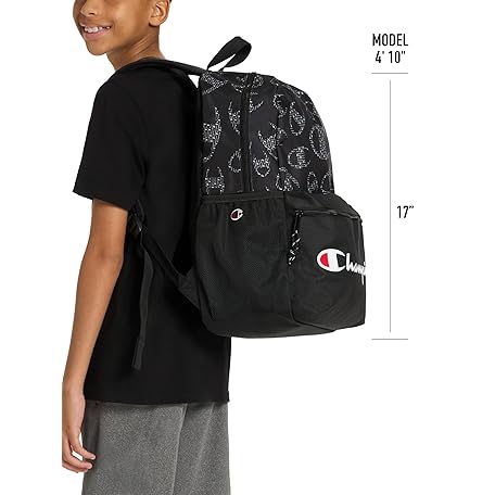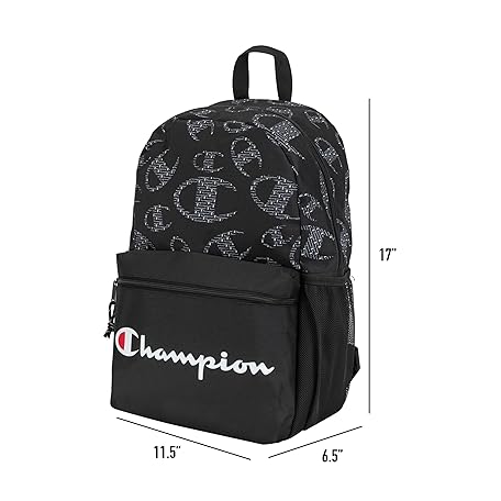 Thông tin sản phẩm Champion Merit Backpack with Padded Straps, Water Bottle Pocket and Laptop Compartment for Daily Use, Black/White, One Size