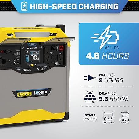 Sản phẩm Champion Power Equipment 100593 3276-Wh Power Station 3200/1600-Watt Portable Lithium-Ion Battery Solar Generator đang được bán với giá ưu đãi là $1689.5 tại nước Mỹ.