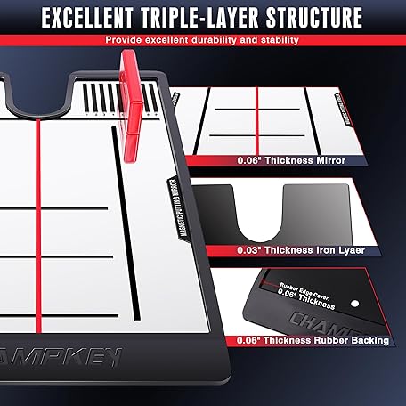 CHAMPKEY Magnetic Putting Mirror - Alignment Putting Aid for Golf - Professional Putting Thing with Golf Gates Ideal for Indoor and Outdoor Training