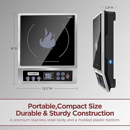 Thông tin sản phẩm CHANGBERT Portable Induction Cooktop, NSF Certified Pro Induction Hot Plate, Powerful 1800W with Large 8" Heating Coil, Premium Stainless Steel, 18 Temp Settings Commercial Grade Countertop Burner