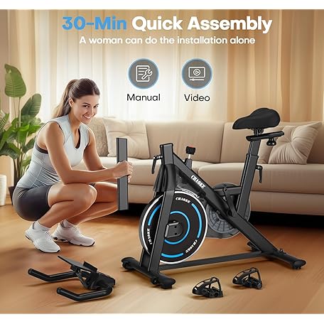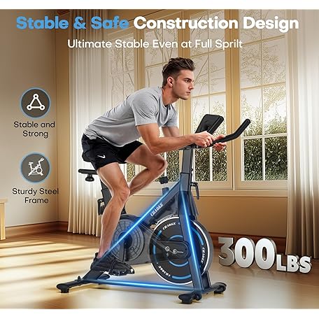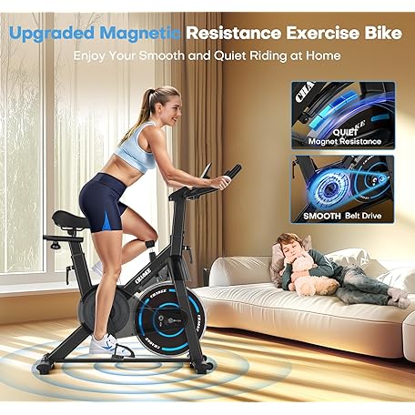 CHAOKE Exercise Bike, Quiet Adjustable Magnetic Stationary Bike for Home Cardio with App Compatible, 350LB Weight Capacity Indoor Cycling Bike with Large Seat, Dumbbell Rack, Pull Cords & LCD Display