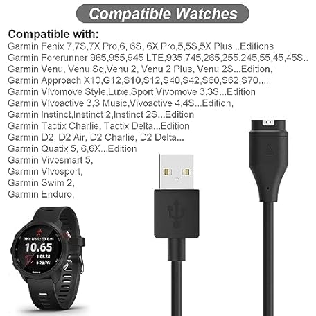Sản phẩm Charger for Garmin Forerunner 45 55 245 255 265 745 945 955 965, Approach S10 S12 S40 S42 S60 S70, Vivoactive 3 4 4S, Instinct, Venu 2 2S Plus, Fenix 7 7S 7X 6 5 Charging Cable [2Pack, 3.3ft/1m] (2) đang được bán với giá ưu đãi là $8.6655 tại nước Mỹ.