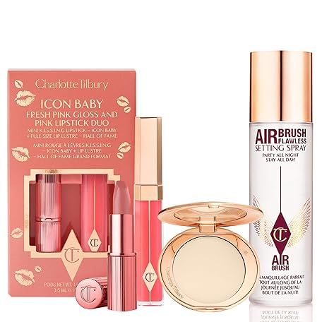 Sản phẩm Charlotte Tilbury Charlotte Tilbury Holiday Kit - AIRbrush Flawless Setting Spray + AIRbrush Flawless Finish + Icon Baby Lip Duo - Hydrating Mist & Pressed Setting Powder Kit with Pink Lipstick Gloss Set đang được bán với giá ưu đãi là $94.83 tại nước Mỹ.