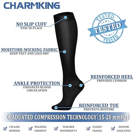 Thương hiệu CHARMKING là cái tên nổi tiếng được rất nhiều khách hàng trên thế giới chọn lựa. Với kiểu dáng đẹp mắt, sang trọng, sản phẩm CHARMKING Compression Socks for Women & Men Circulation (8 Pairs) 15-20 mmHg is Best Support for Athletic Running,Cycling là sự lựa chọn hoàn hảo nếu bạn đang tìm mua một món cho riêng mình.