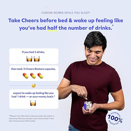 Thông tin sản phẩm Cheers Restore | Supplement with DHM + L-Cysteine | Feel Better After Drinking & Support Your Liver | 12 Doses | Dihydromyricetin, Cysteine, Milk Thistle, Prickly Pear, B-Vitamins, Ginger