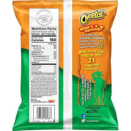 Thương hiệu Cheetos là cái tên nổi tiếng được rất nhiều khách hàng trên thế giới chọn lựa. Với kiểu dáng đẹp mắt, sang trọng, sản phẩm Cheetos Crunchy Cheddar Jalapeño Cheese Flavored Snacks, 8.5 Oz là sự lựa chọn hoàn hảo nếu bạn đang tìm mua một món cho riêng mình.