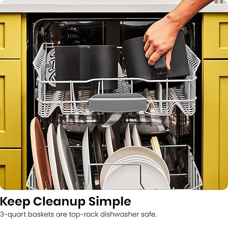 Thông tin sản phẩm Chefman 6 Quart Dual Basket Air Fryer - Digital Touchscreen, Smart Sync Finish, Hi-Fry, Auto Shutoff, 2 Independent 3QT Nonstick Dishwasher-Safe Frying Baskets - Digital Double Air Fryer - Black