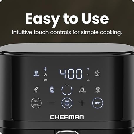 Thông tin sản phẩm Chefman Air Fryer – 4 QT Compact Airfryer for Quick & Easy Meals, Features Hi-Fry Technology for Extra Crisp, Easy-View Window, Touch Controls with 4 Presets, Nonstick & Dishwasher Safe Basket - Black
