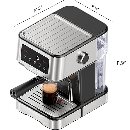 Thông tin sản phẩm Chefman CraftBrew Espresso Machine, 15-Bar Pump Digital Espresso Maker w/Steam Wand for Latte & Cappuccino, Compact Espresso Coffee Machine w/ 1.5L Removable Water Reservoir - Stainless Steel